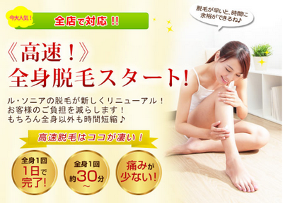 ル・ソニアの脱毛では最新の高速脱毛を採用しているので、